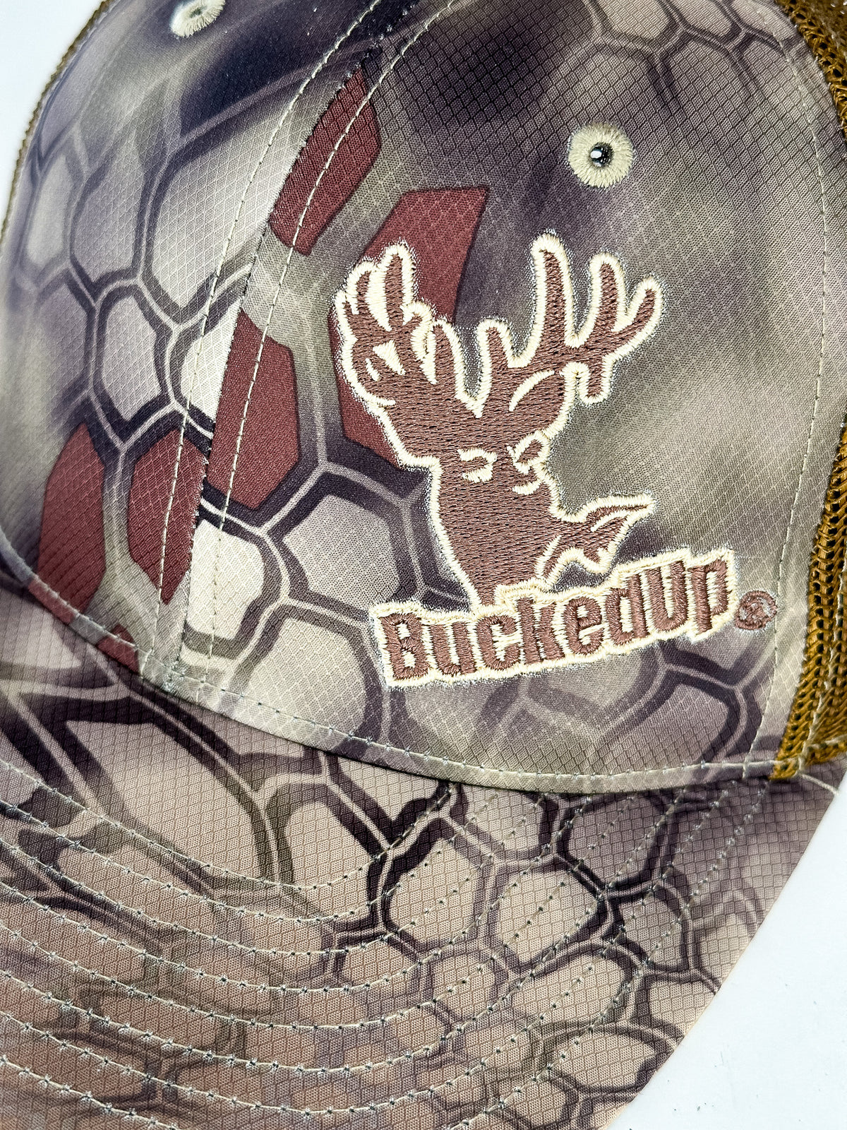 BuckedUp® Kryptek Tan Logo with Tan Mesh Snapback