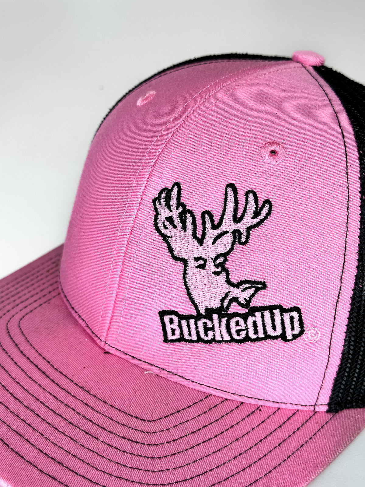 BuckedUp® Pink Logo Pink with Black Mesh Snapback