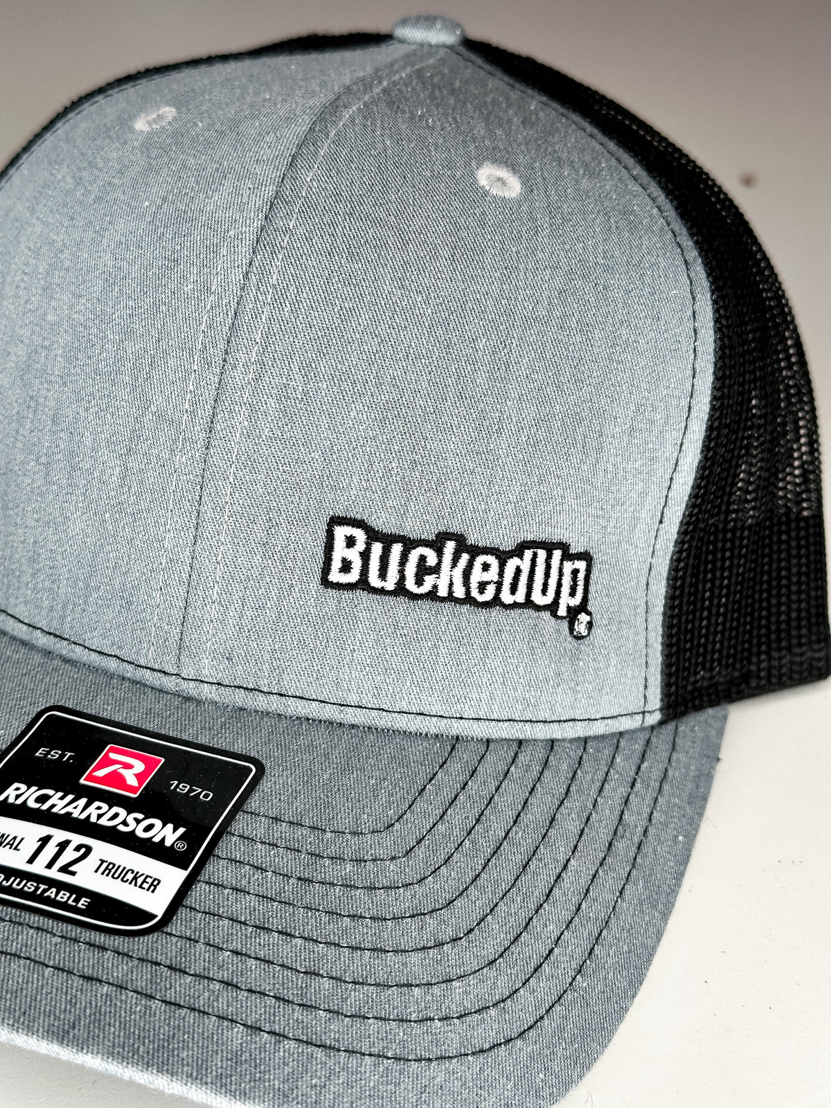 BuckedUp® Text Heather Grey with Black Mesh Snapback