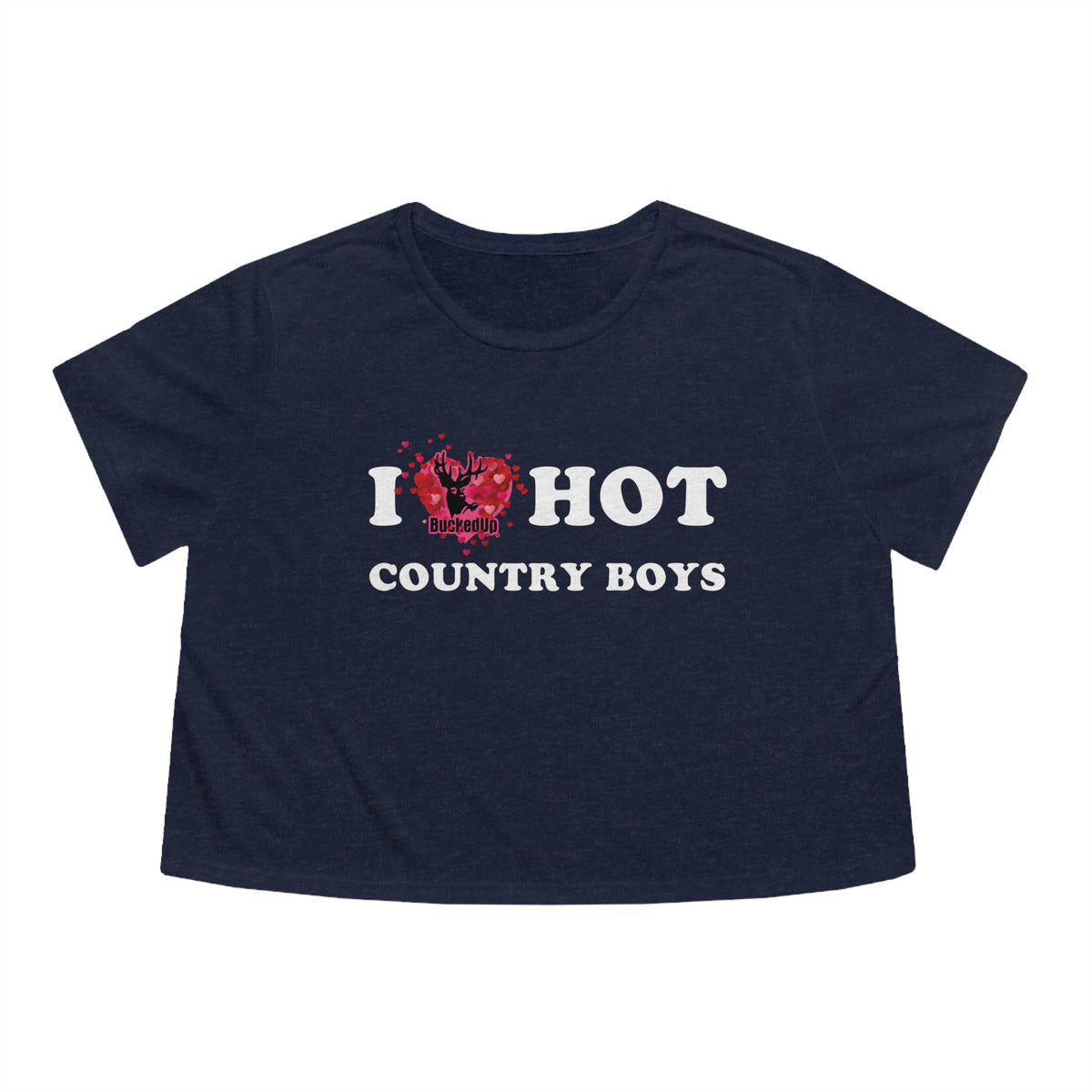 I Heart Hot Country Boys BuckedUp® Women's Flowy Cropped Tee