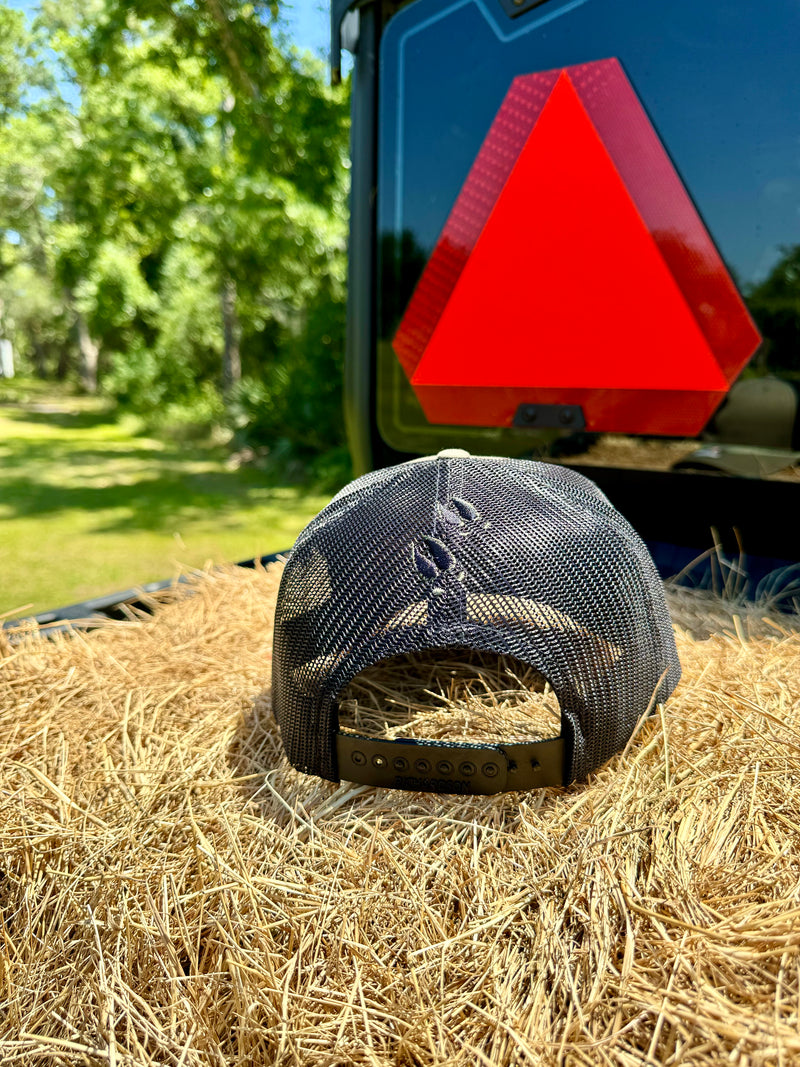 BuckedUp® Dark Gray Text White with Black Mesh Snapback