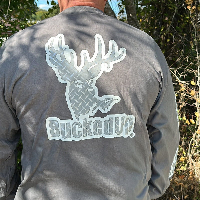 Long Sleeve Charcoal with White Diamond Plate BuckedUp® Logo