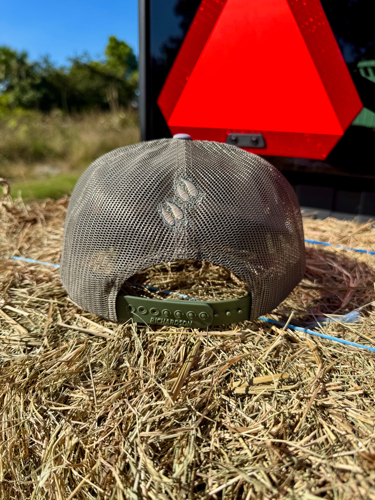 35/65 Cotton/Polyester, 100% mesh back. Structured, midprofile, six-panel. Pre-curved contrast stitch visor. Adjustable plastic snapback.