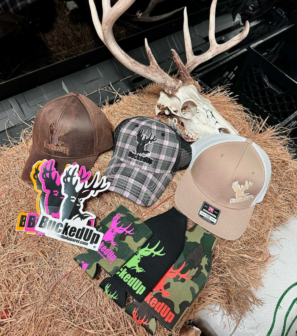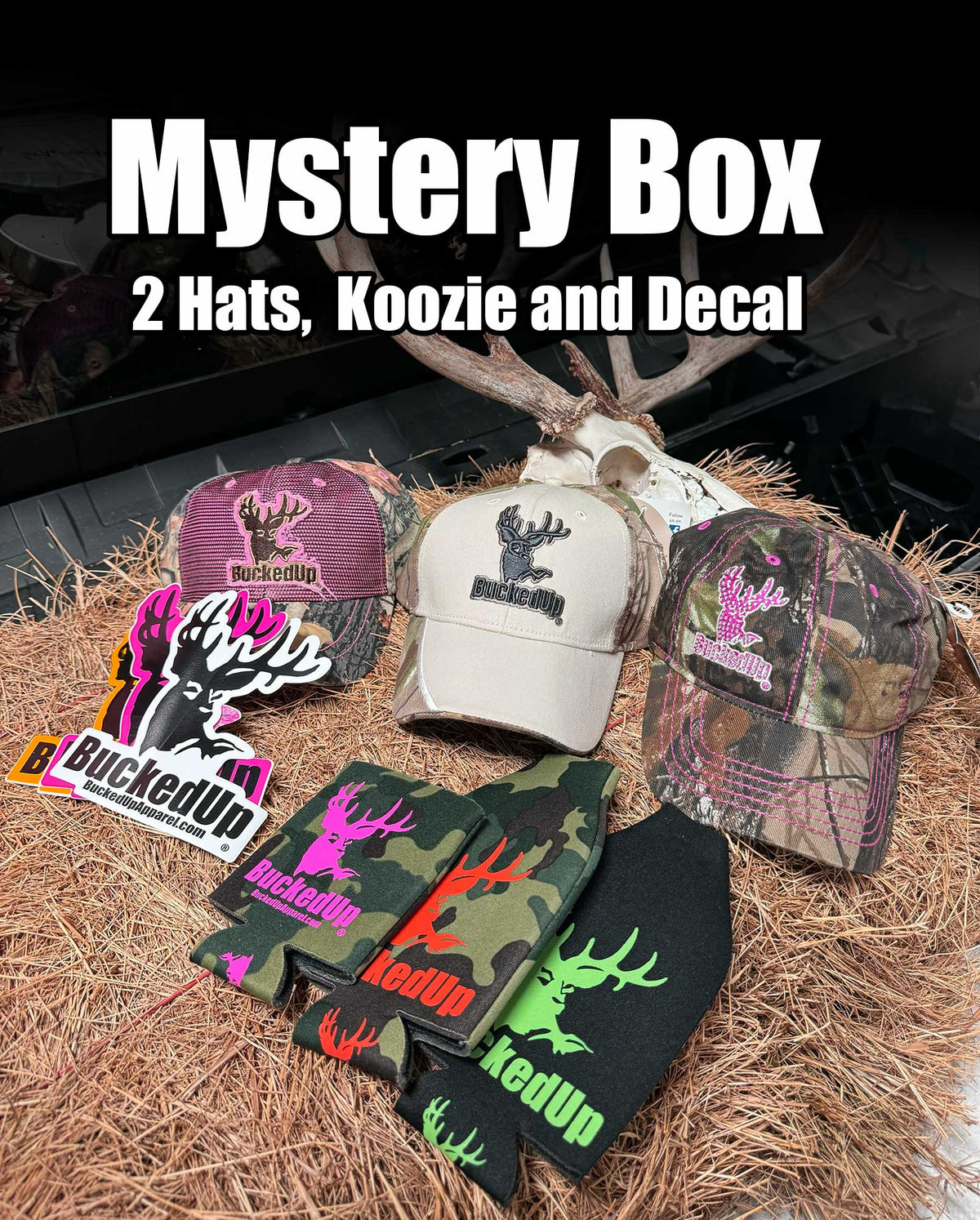 You will receive 2 RANDOMLY SELECTED BuckedUp®️ hats, 1 koozie and decal.