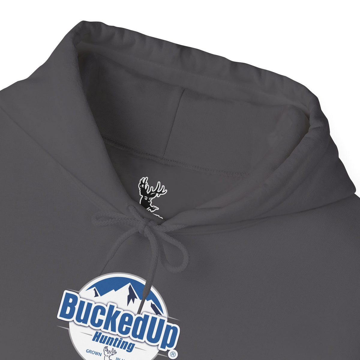 Pullover Hoodie - Charcoal with Blue Gill BuckedUp Hunting Logo