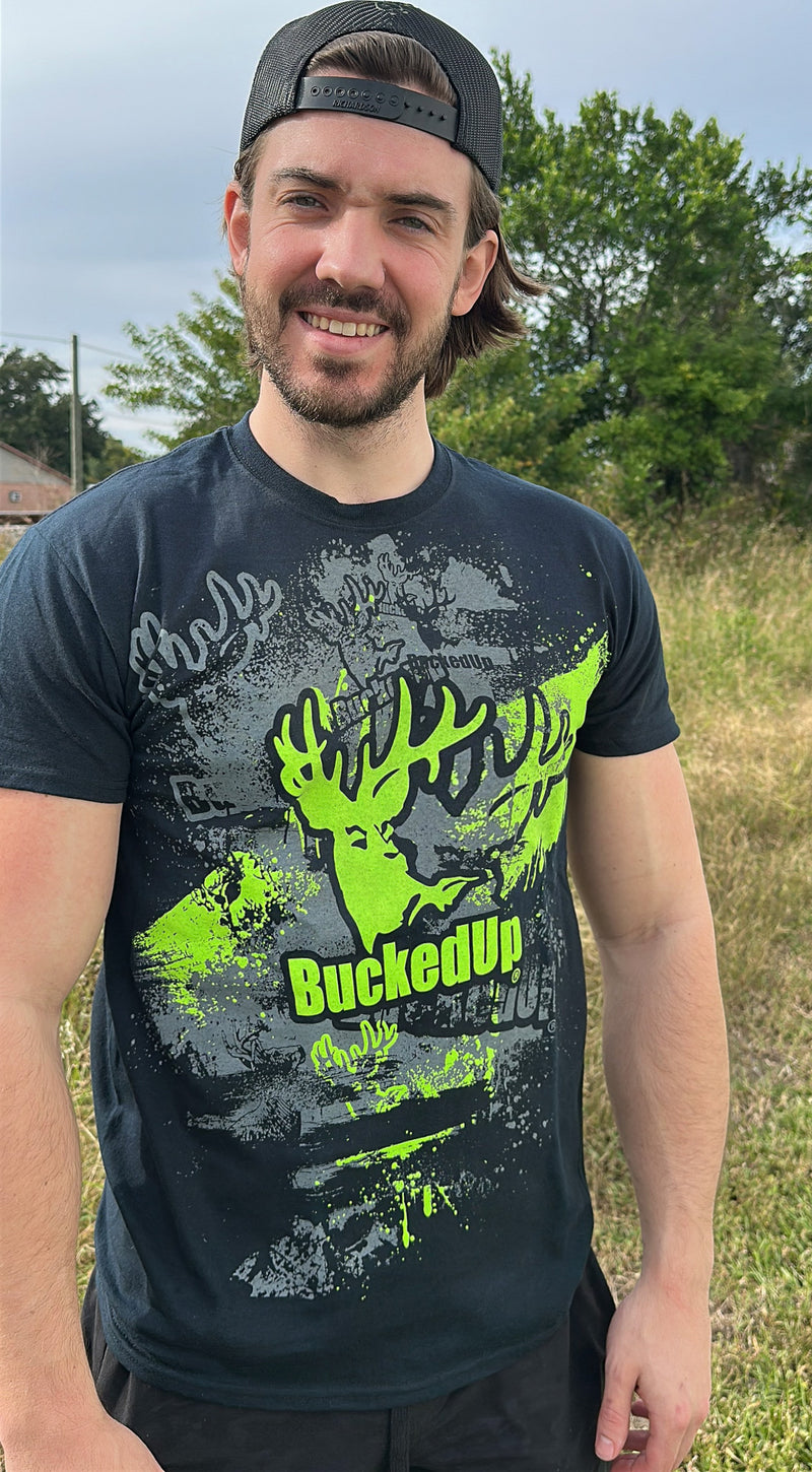 Short Sleeve Black with Camo Black BuckedUpĀ® Logo