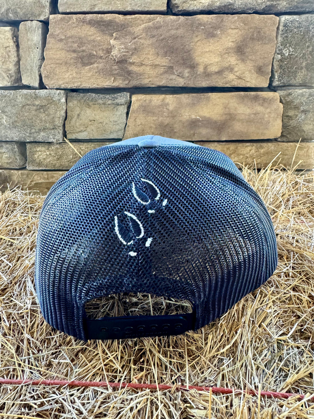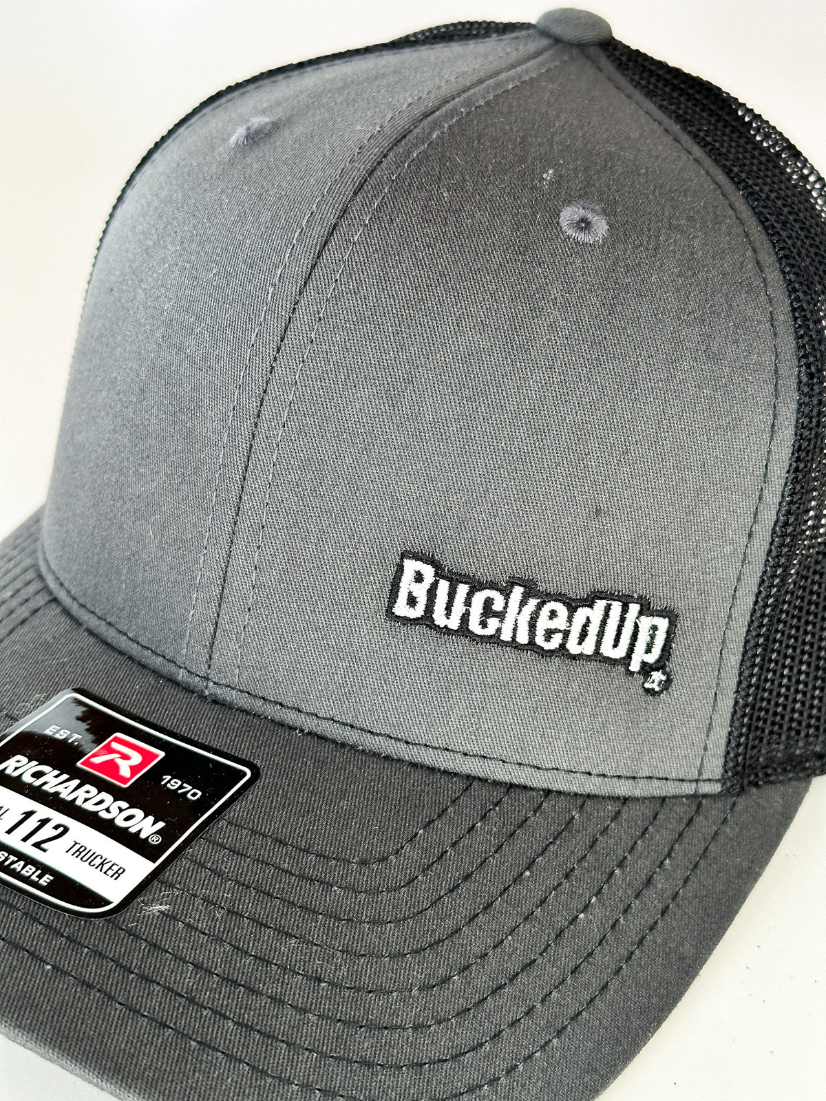 BuckedUp® Dark Gray Text White with Black Mesh Snapback