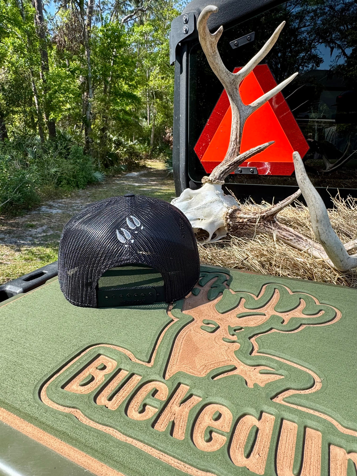 BuckedUp® Leather Patch 7 Panel Hi Profile Charcoal with Grey Front and Black Mesh Snapback