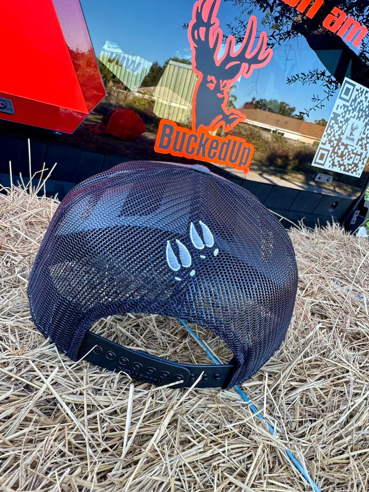 35/65 Cotton/Polyester, 100% mesh back. Structured, midprofile, six-panel. Pre-curved contrast stitch visor. Adjustable plastic snapback.