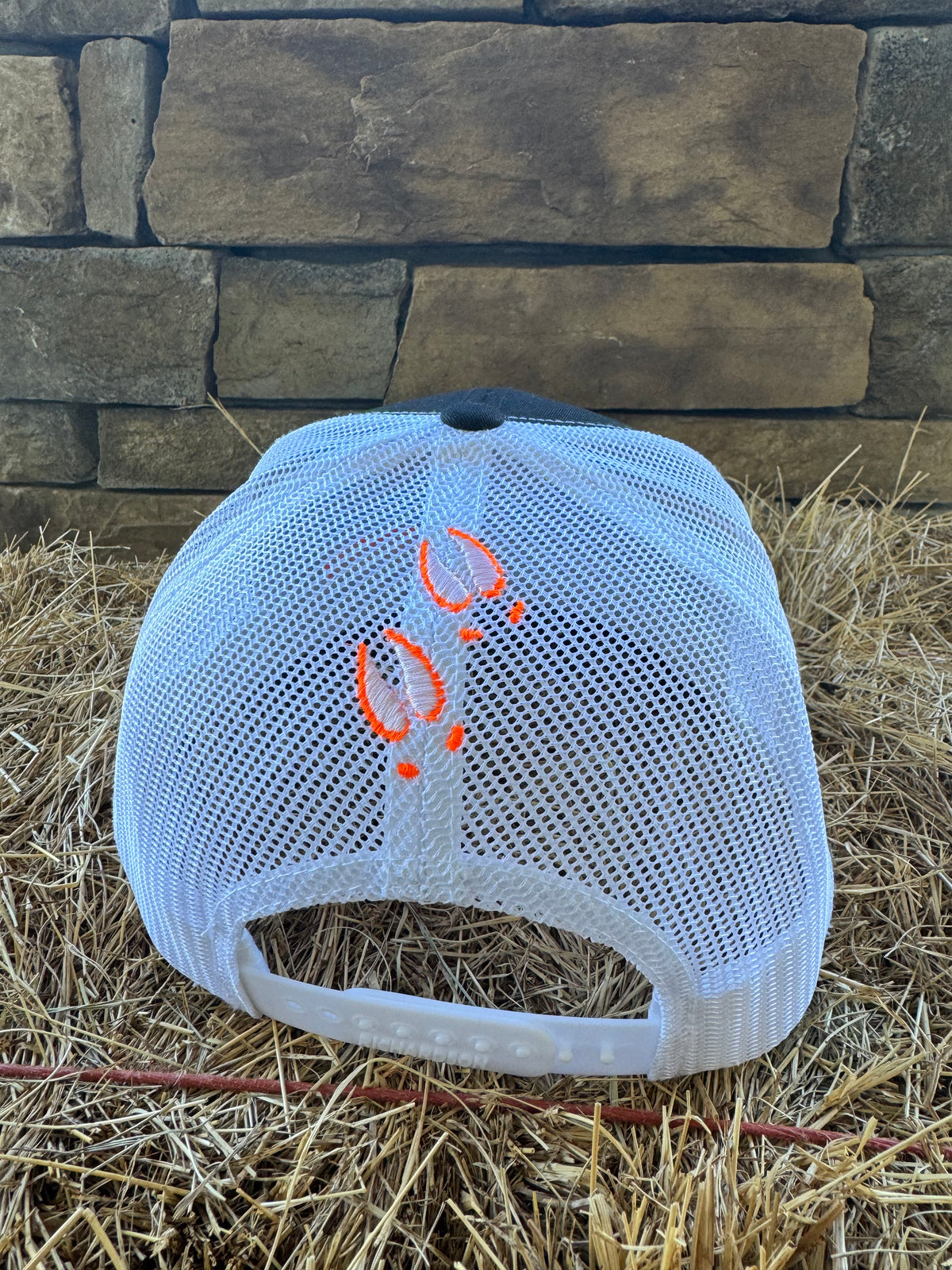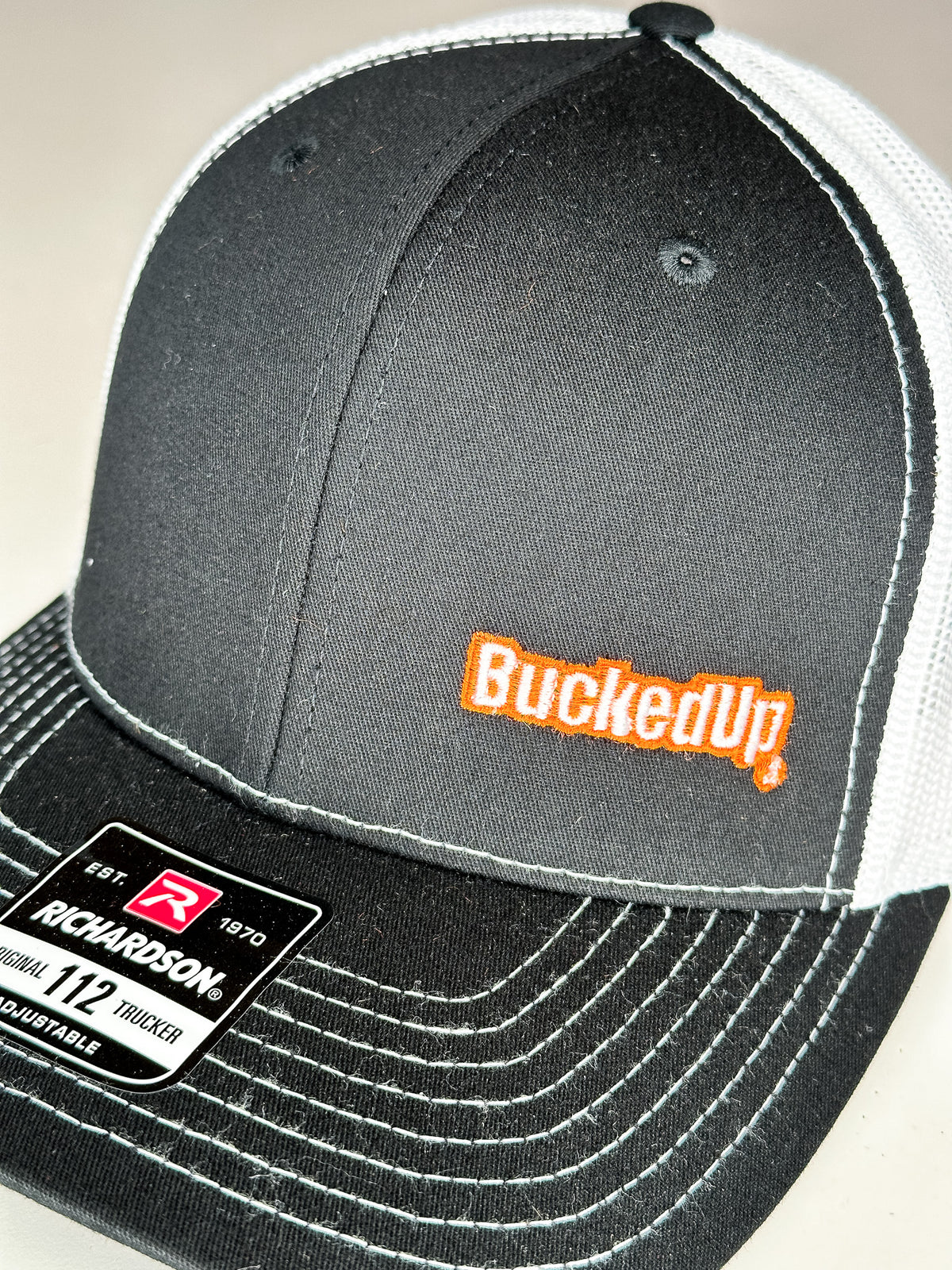 BuckedUp® Orange Text Black with White Mesh Snapback