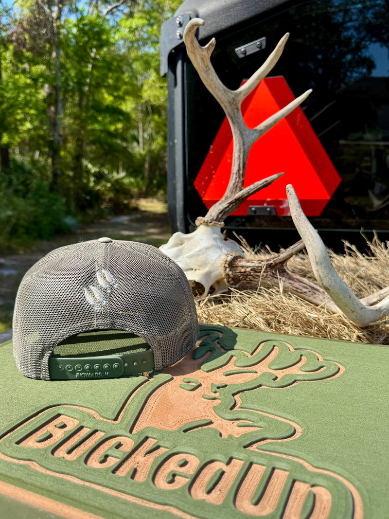 BuckedUp® Leather Patch Loden with Black Mesh Snapback with Flex