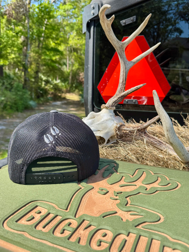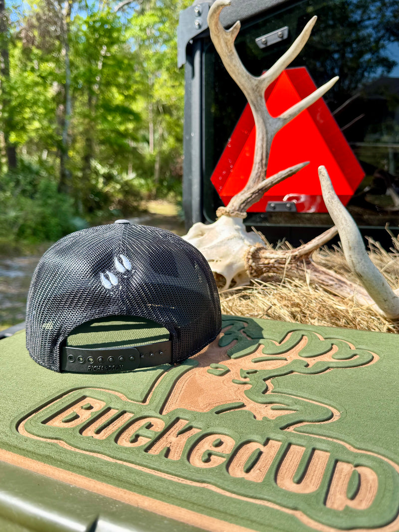 BuckedUp® Leather Patch Black with Grey Bill and White Mesh Snapback
