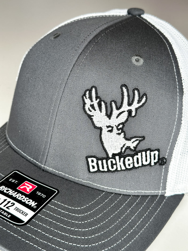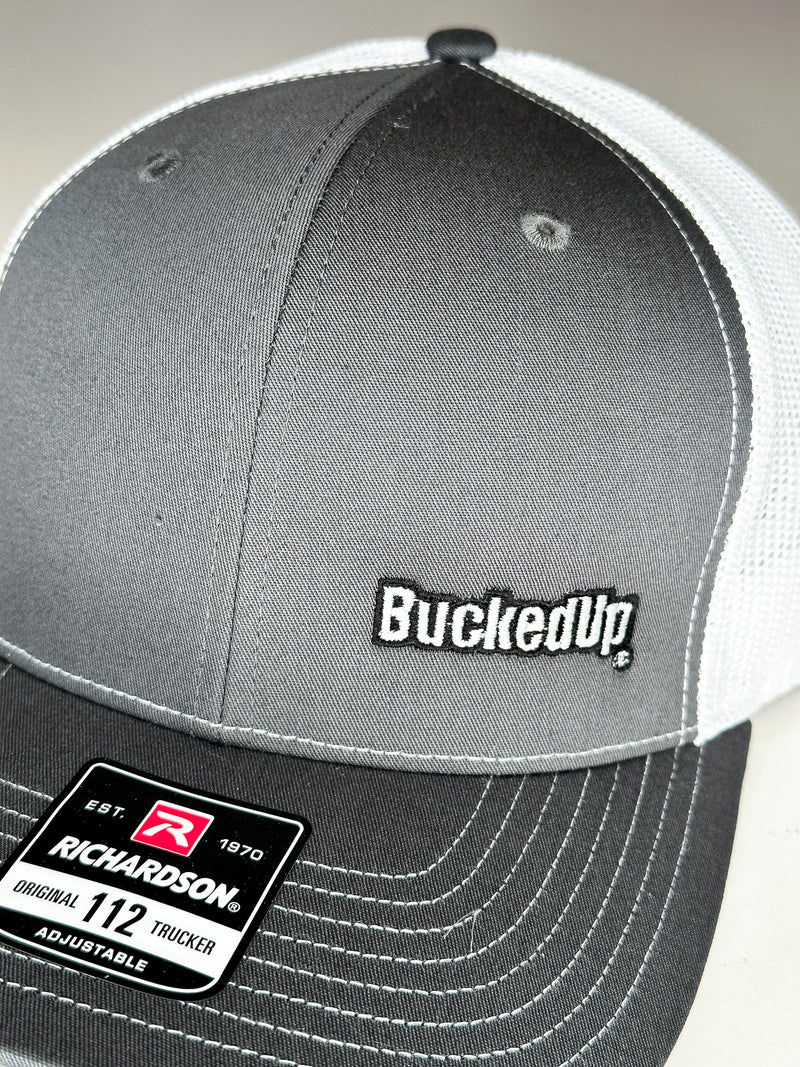BuckedUp® Grey Logo Grey with White Mesh Snapback