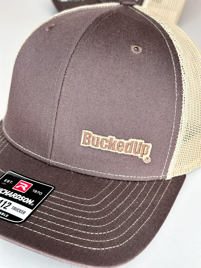BuckedUp® Brown Text Brown with Tan Mesh Snapback