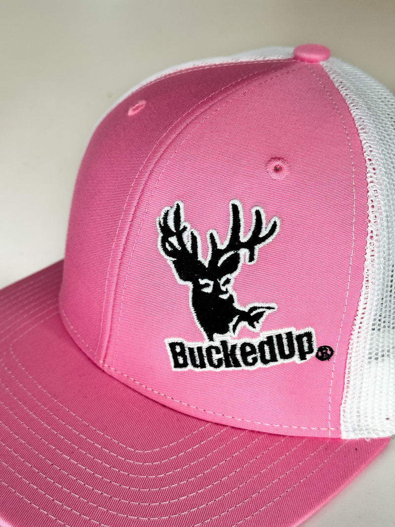 BuckedUp® Black Logo Pink with White Mesh Snapback