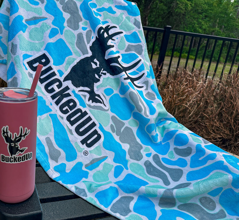 Teal Camo Rally Towel with BuckedUp Logo