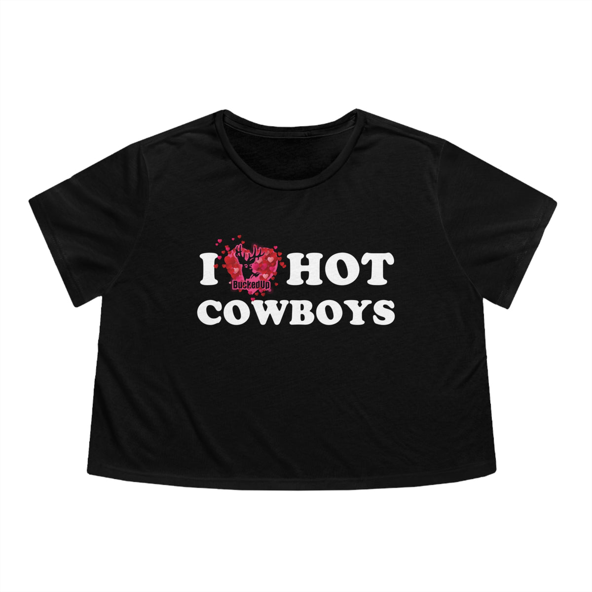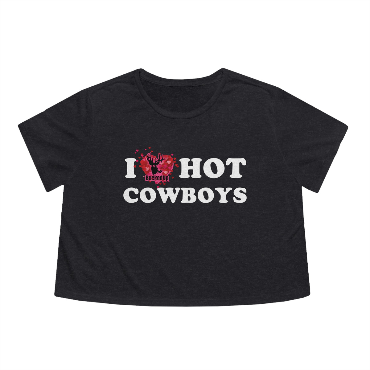 I Heart Hot Cowboys BuckedUp® Women's Flowy Cropped Tee